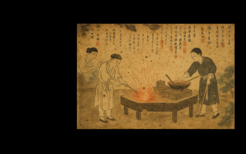 When Chinese alchemists during the tang dynasty searched for a potion for immortality (as is the philosopherâs stone) they accidentally created the explosive mix that is gunpowder. It served medical purposes and made fireworks for centuries before itâs military use.