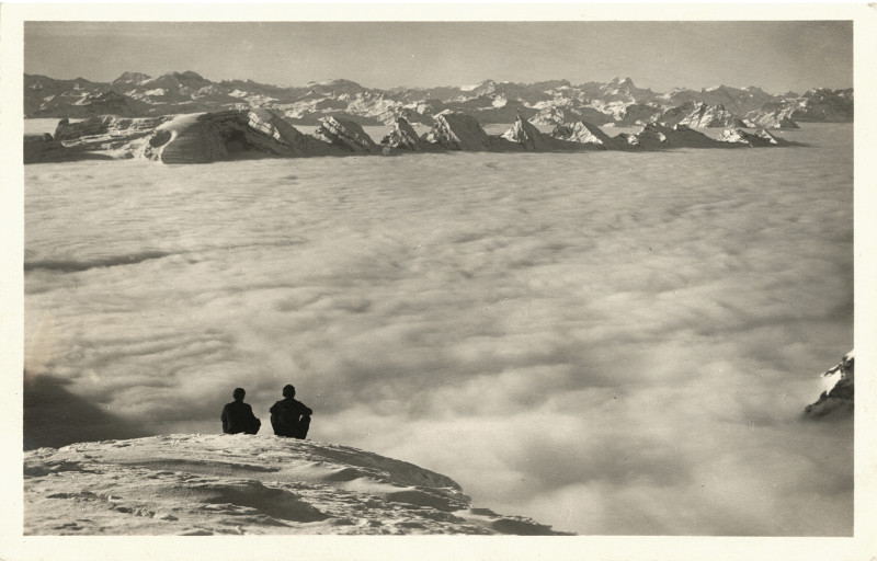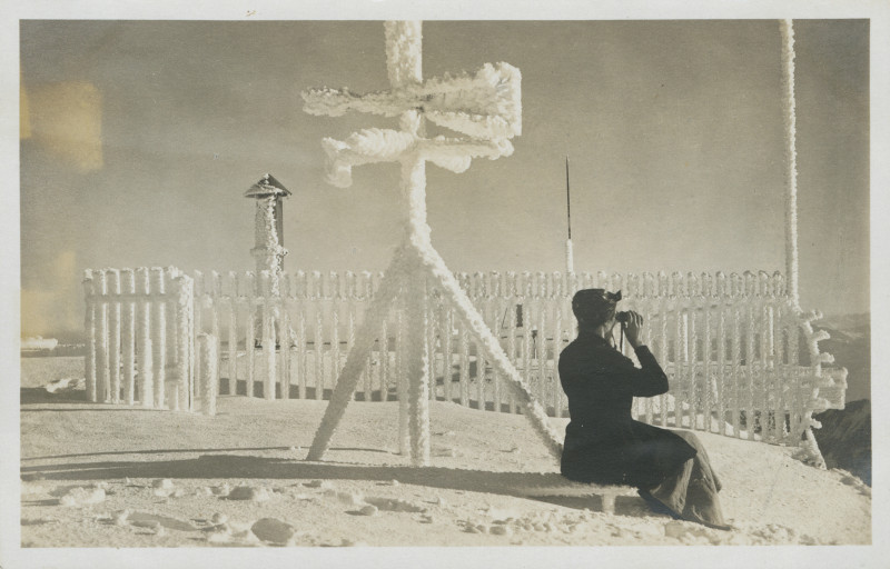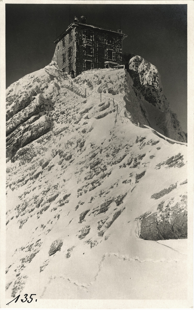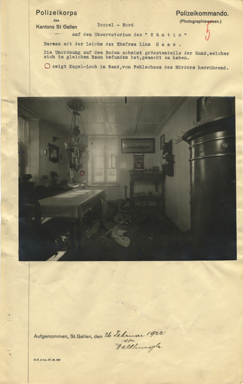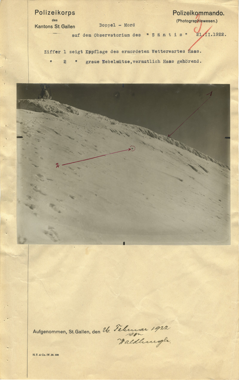 Atop the SĂ€ntis mountain, 3,000 meters above sea level, the married couple Heinrich and Magdalena Haas lived and worked in a small weather station. Every day, they transmitted their weather observations via telegraph down into the valleyâuntil one day, the line went silent. Magdalena Haas was found in the devastated kitchen; Heinrich Haas was discovered farther down the slope, lying face-down in the snow. A rival had brought their shared life to an end. Archival photographs offer a glimpse into the intimate atmosphere of their togethernessâa sparse life framed by immense geological beauty.